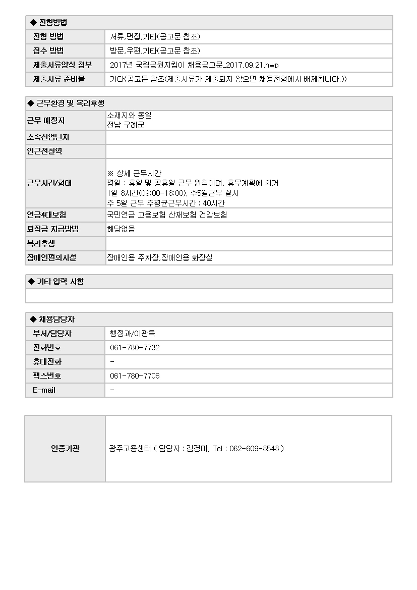 | 18 | [지리산국립공원남부사무소] 채용 | 장애학생지원센터 | 17-09-25 | 314 |